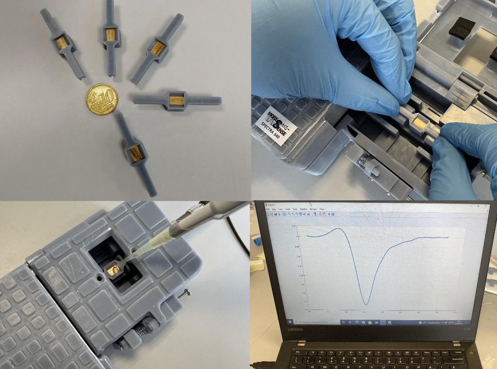 Come mostrato in Figura 5, il sensore SPR-POF-MIP utilizzato in BETTER è implementato in un supporto dalle dimensioni compatte e user-friendly che permette l’analisi dei dati in tempo reale.